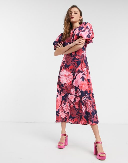 Floral Puff Sleeve Open Back Midi Dress. Read reviews and buy Womens Puff Elbow Sleeve Open Back Dress- Who What Wear at Target. Featuring elegantly puffed sleeves with elasticated cuffs a functional tie back neck for ease and a shirred back panel.