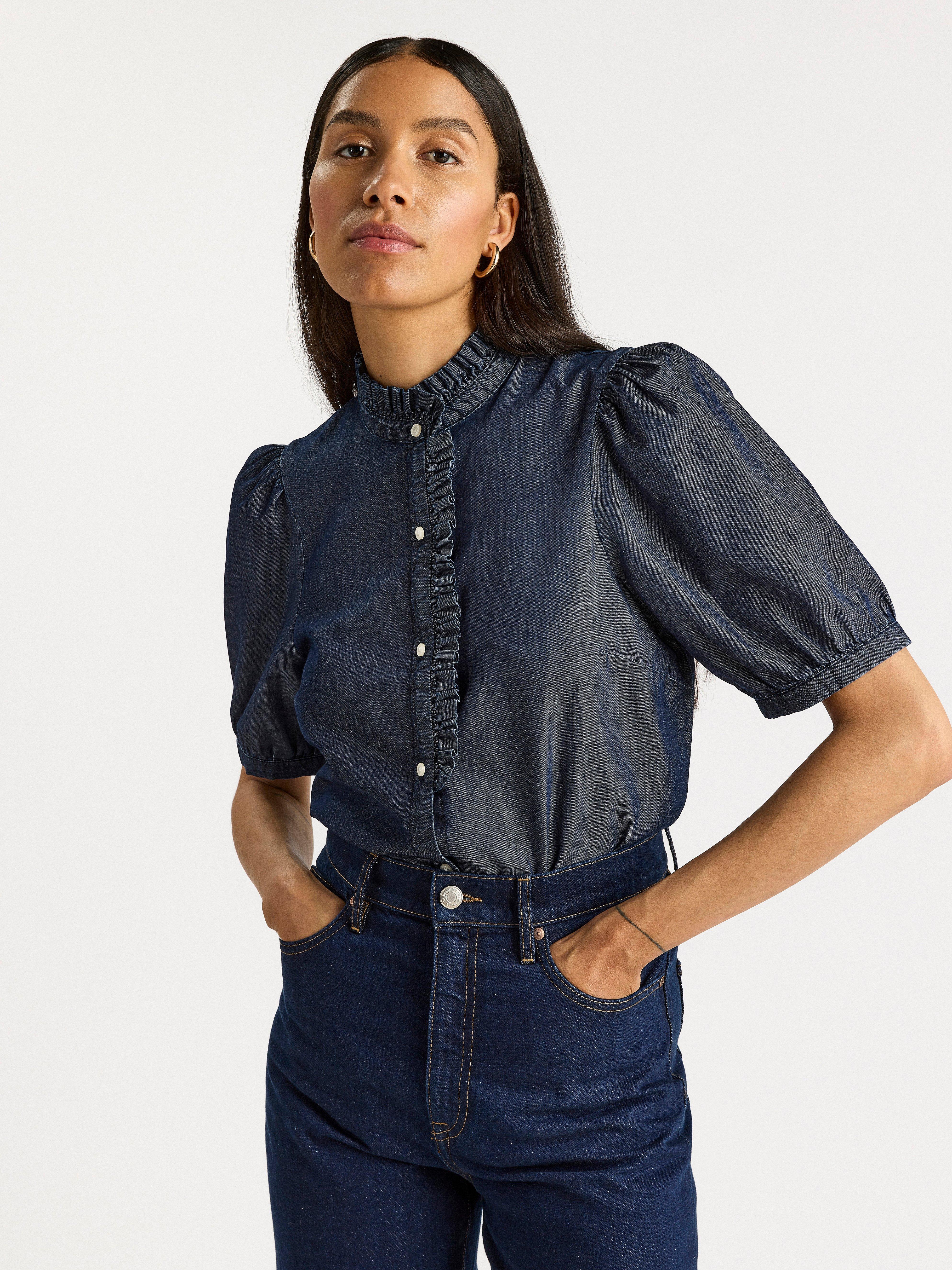How Oasis uses cookies We use cookies that help us provide you with the best possible shopping experience with us. Featuring a classic cotton chambray with its signature shifting light hue puffed sleeve with a smocked cuff and the always-essential in-seam pockets come together to make this dress a spring essential. Embrace the statement collar trend with this fun ruffle trimmed shirt. In a softly chambray fabric this retro shirt adds to your choice for the upcoming seasons. Jun 4 2021 - Free shipping on orders over 89. Fits true to size order your normal size Model measurements. The whole garment is based on a fairly standard commercial blouse sewing pattern see below. Shop for the Puff-sleeve chambray top for women. Long sleeves with adjustable button cuffs.
